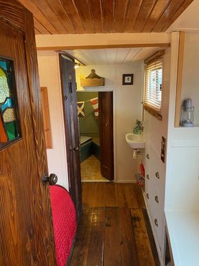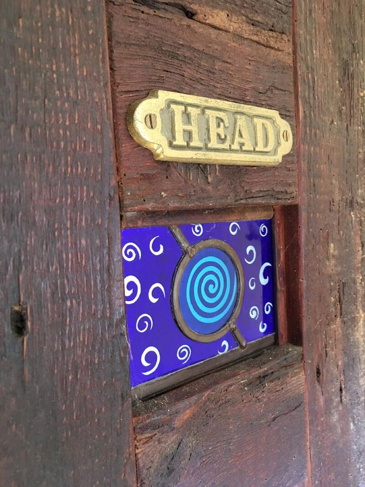 Handmade Doors with handmade stained glass insets to Galley