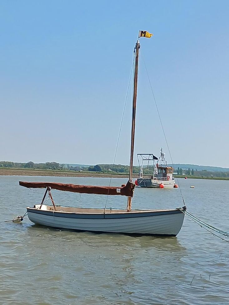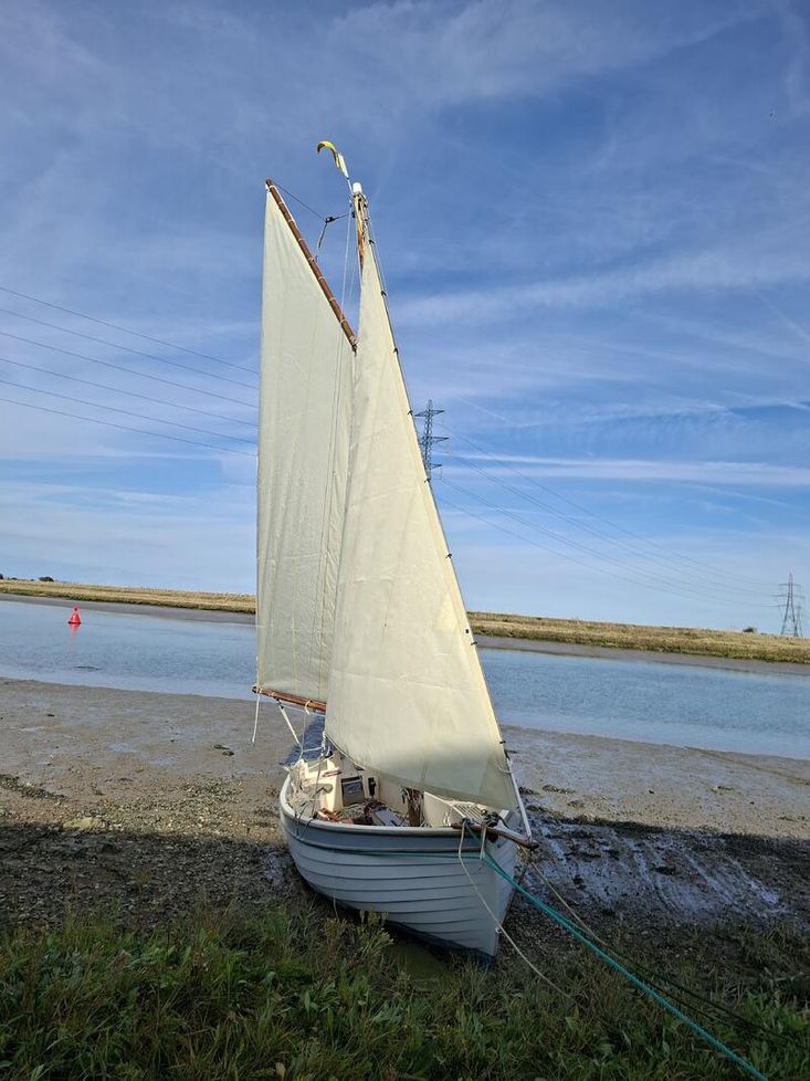 Norfolk oyster 16 comes with a trailer, cover, new suit of cream gaff sails ( main and staysail) plus the original gunter main and staysail the hull has been painted in a light grey and darker top strake interior is original and was last anitifouled in June. there is a 2.5hp Yamaha outboard that doesn't want to start at the moment which needs someone how know a little more about them.